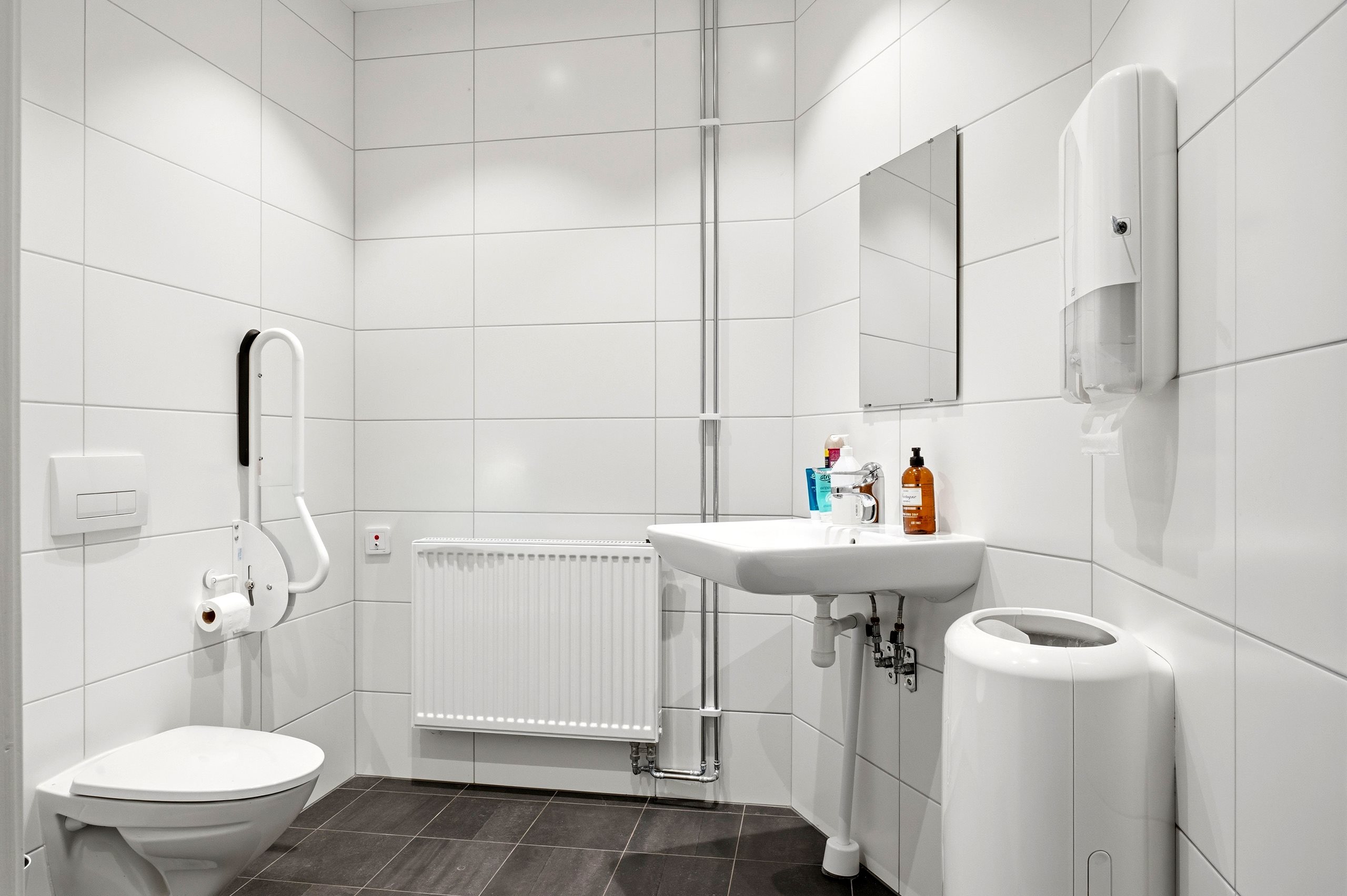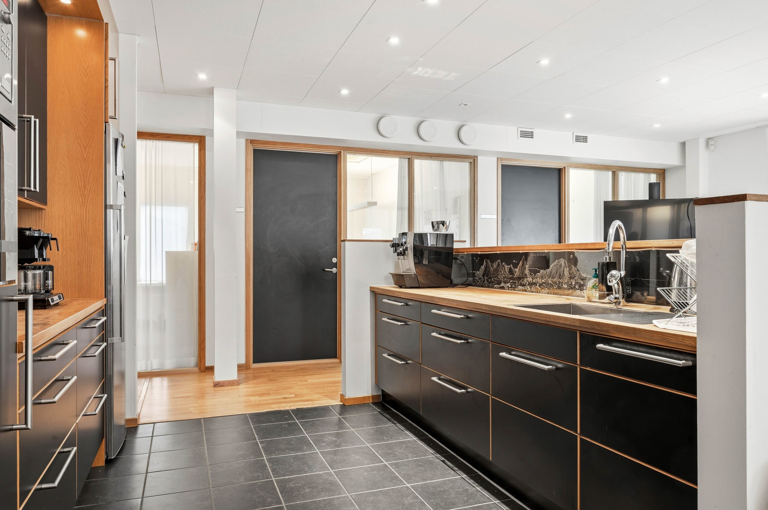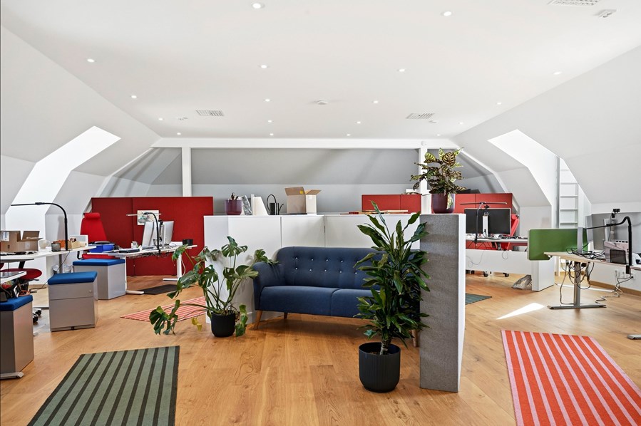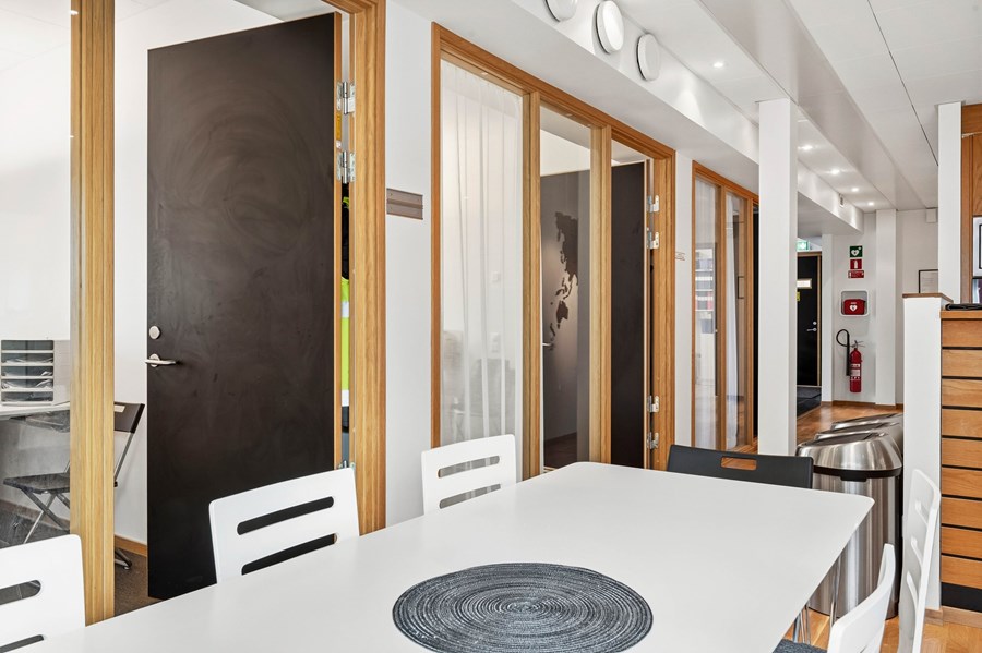 På de övre planen finns ytterligare utrymmen för kontor, konferens samt produktion eller lager. Ljusa materialval och välplanerade ytor bidrar till en trivsam arbetsmiljö. Här finns även omklädningsrum med dusch och wc samt tillgång till bastu, vilket ger goda personalutrymmen.