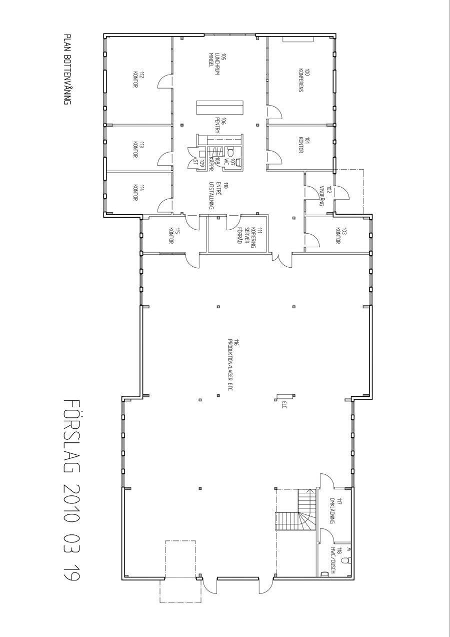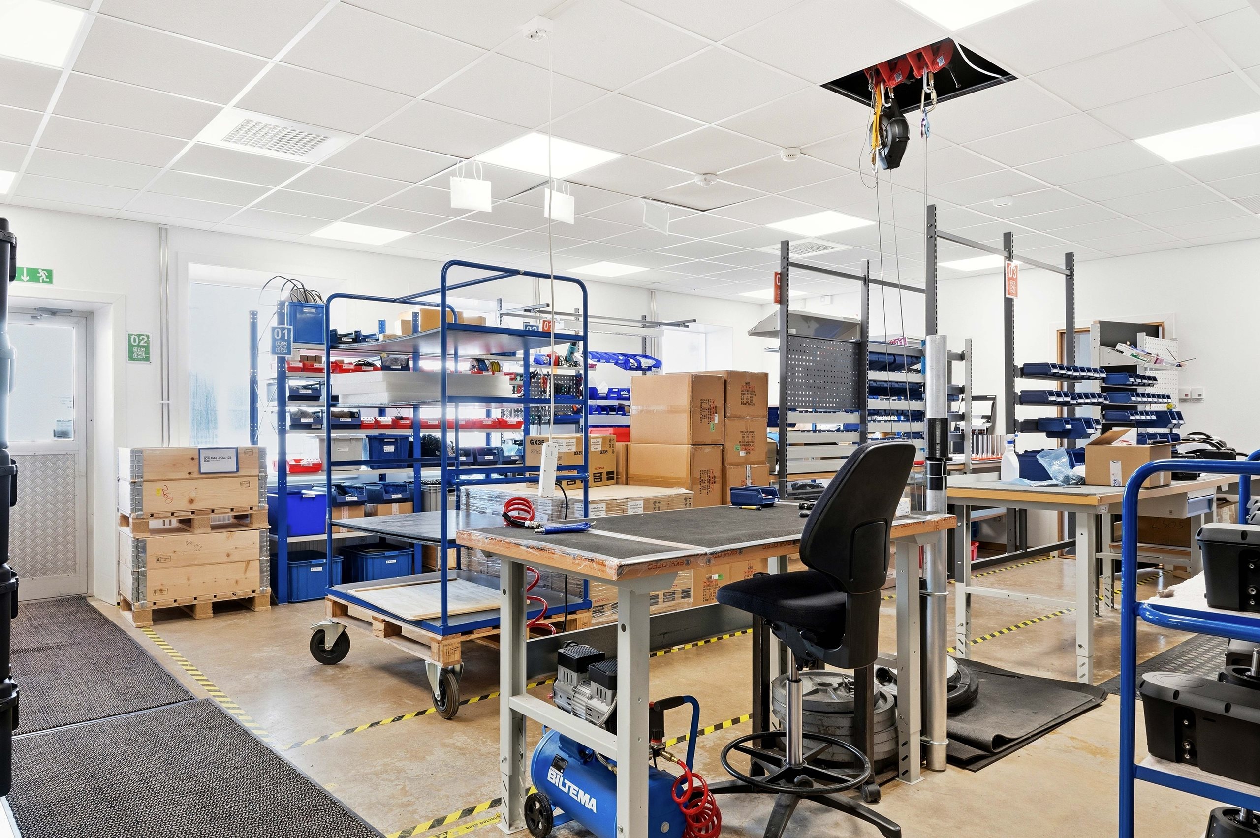 Lokalerna är disponerade på ett effektivt sätt med en naturlig kombination av kontorsytor och industriella utrymmen. I entréplan finns ljusa och moderna kontorsmiljöer med både enskilda arbetsrum och gemensamma ytor såsom lunchrum och pausutrymmen. Här finns även wc, förråd samt smidiga förbindelser vidare till produktions- och lagerytor.