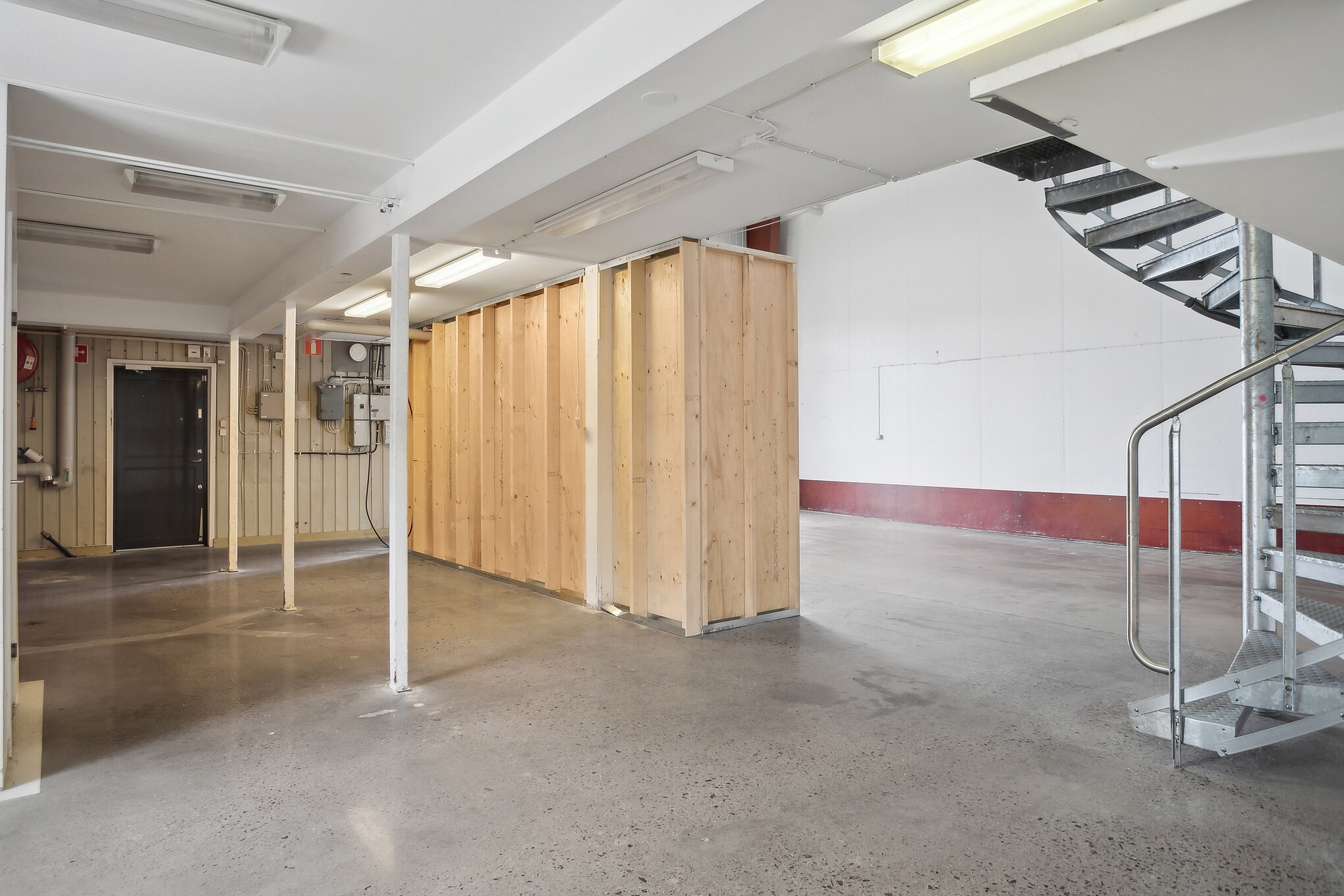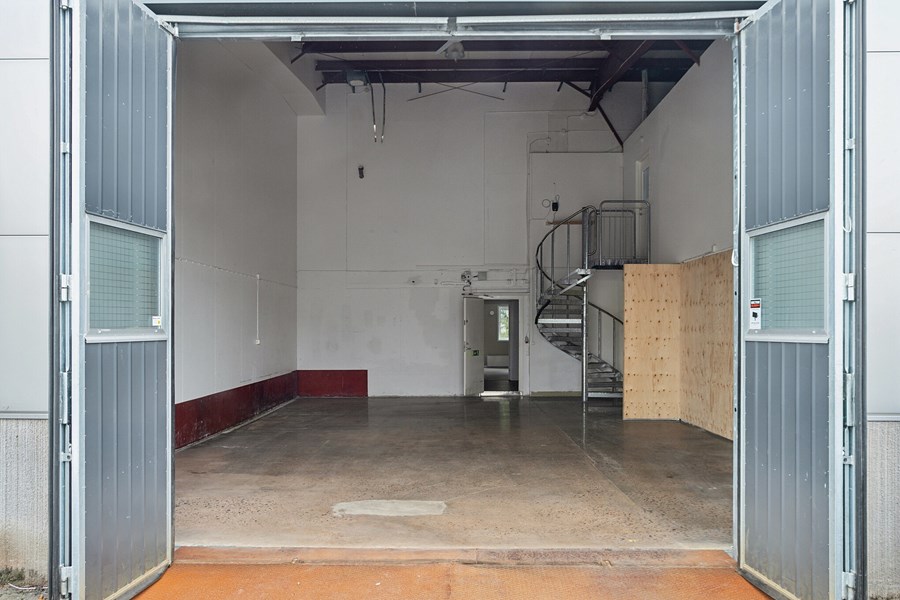 Lokalen är belägen med gavelläge och är i två plan. Entréplan - Höglager som nås via vikport. Låglager med en takhöjd om ca 2,5 m. I entréplanet finns även två wc varav ett med