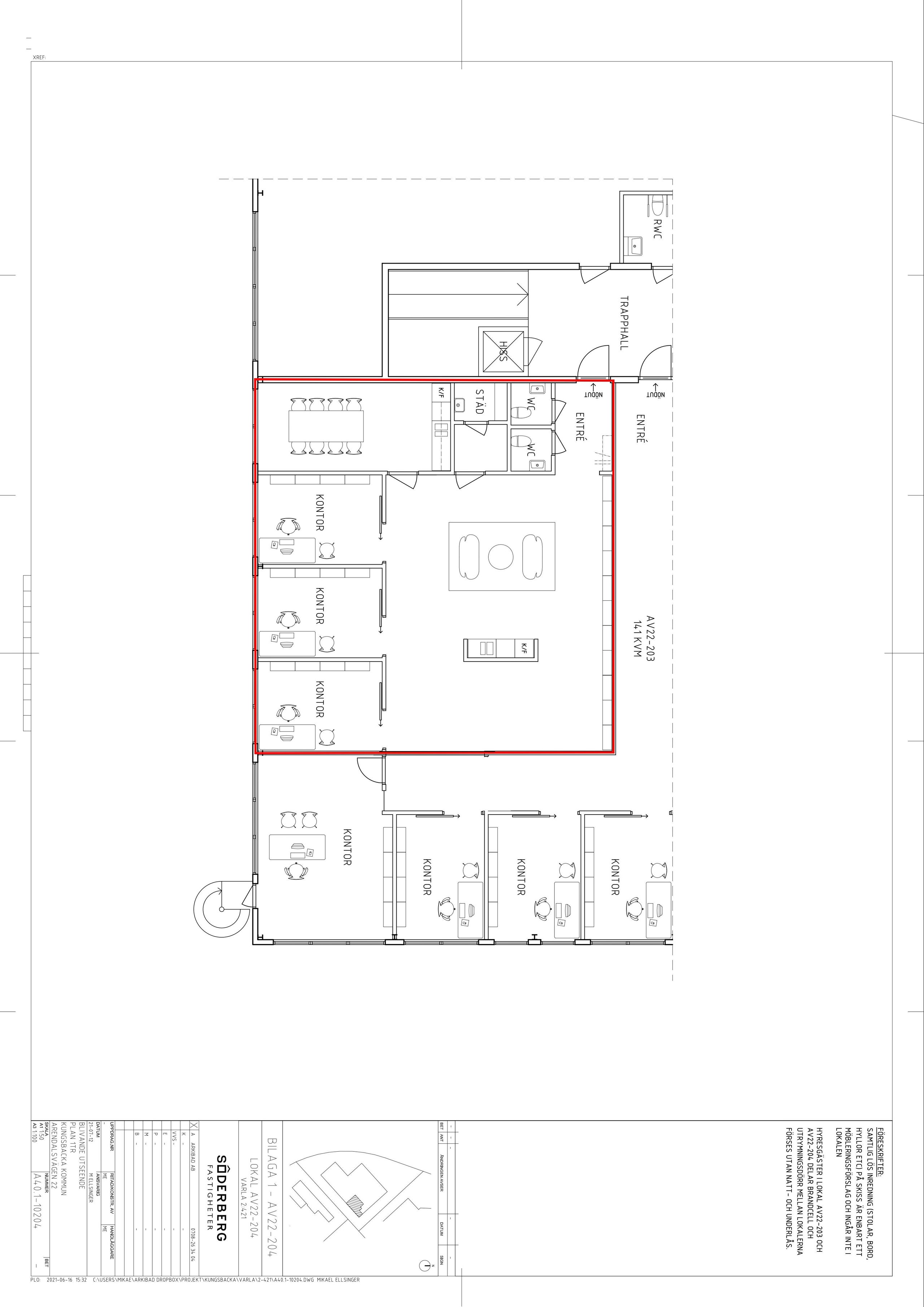 Kontorsplan (en trappa upp)