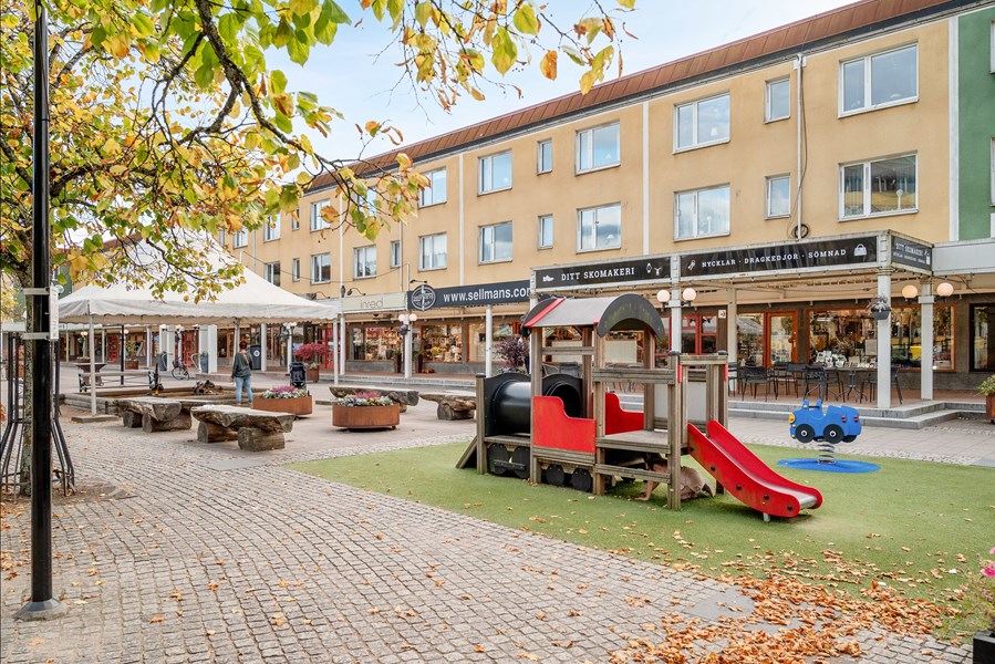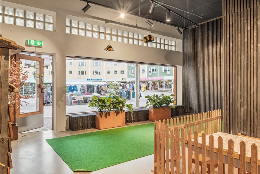 Lokalen lämpar sig utmärkt för butik inom tex Detaljhandel inom smycken och accessoarer eller varför inte dammode. Stora skyltfönster ut mot torget samt egen entré både från torget och direkt från entrén. Öppen planlösning ger många möjligheter att anpassa ytan efter dina behov. Ej restaurang.