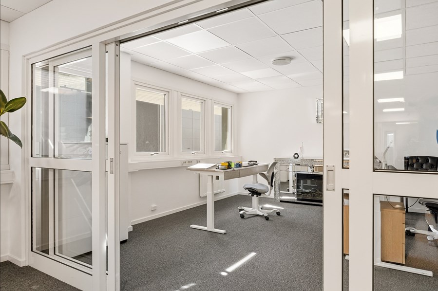 Kontor och personalutrymmen på ca 232 kvm och till enheten hör även ett omklädningsrum om ca 37 kvm samt markyta om ca 800 kvm.