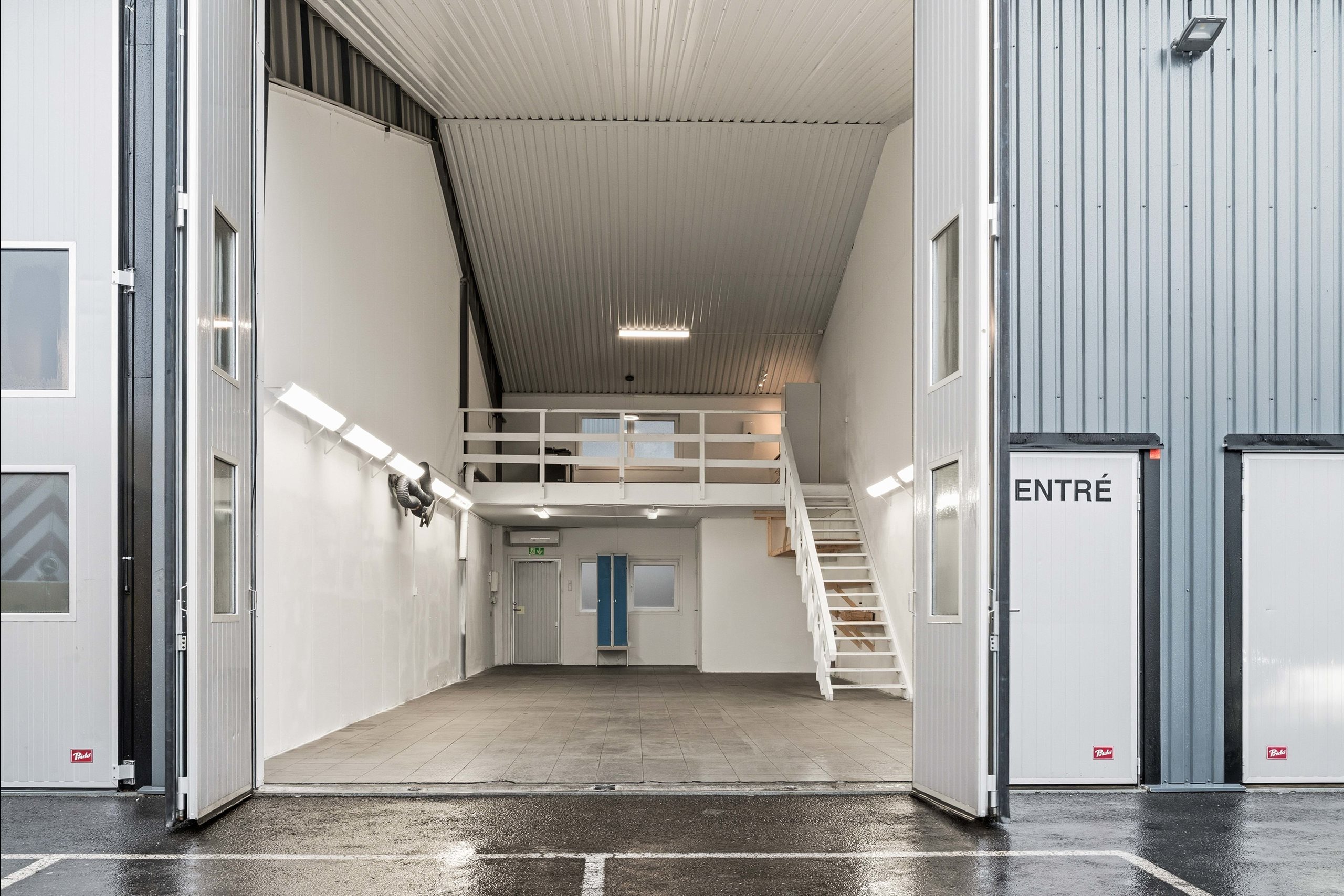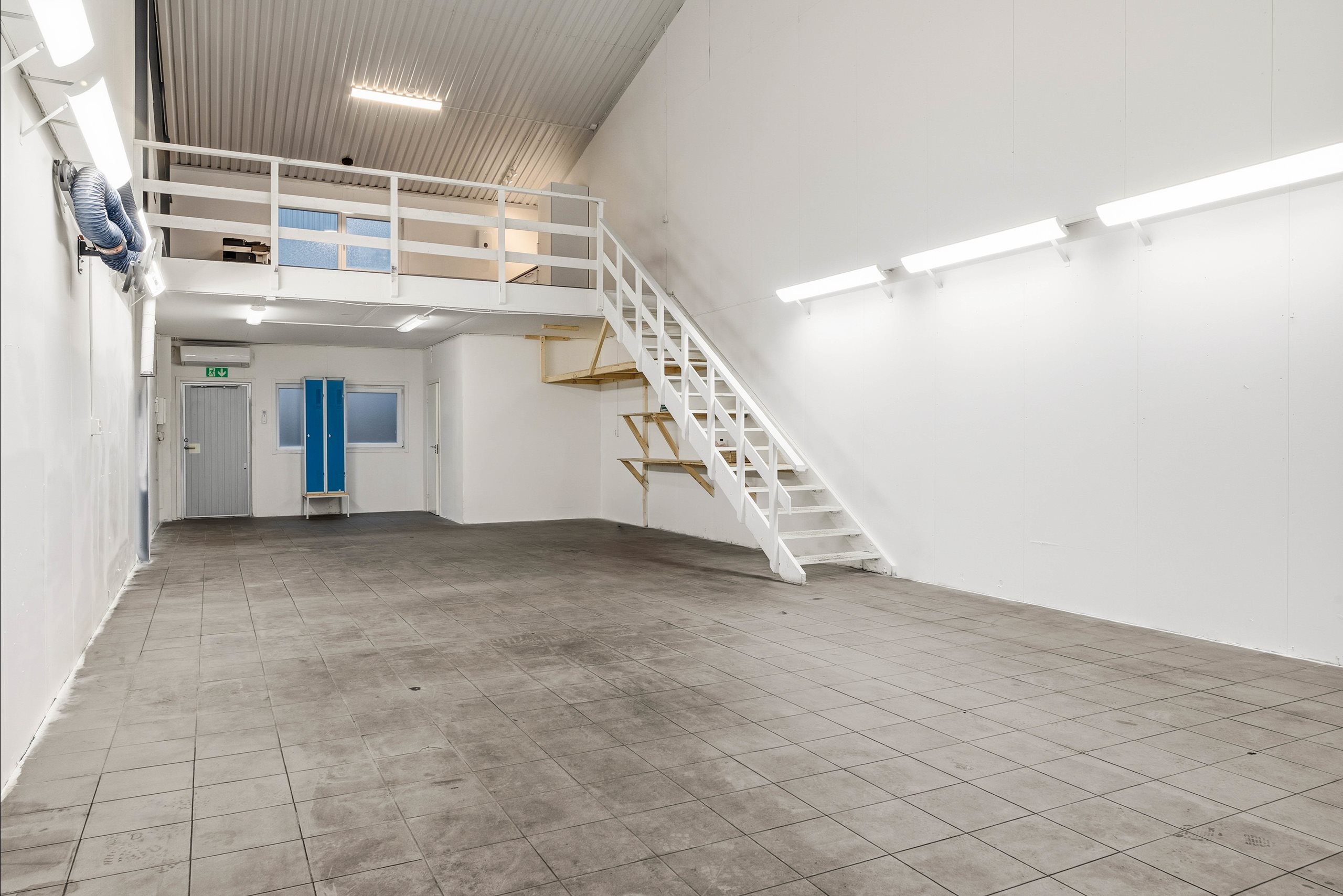 Upptäck en flexibel och modern kombilokal om totalt 122 kvm, där 92 kvm generös golvyta kompletteras av ett praktiskt entresolplan på ca 30 kvm – perfekt för både lager, kontor eller annan verksamhet som kräver smarta ytor. Den imponerande takhöjden tillsammans med en 5 meter hög portar erbjuder smidiga logistiska möjligheter och enkel hantering av större gods.