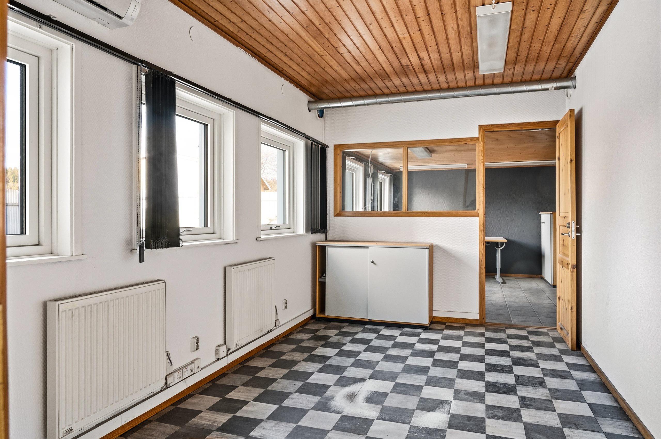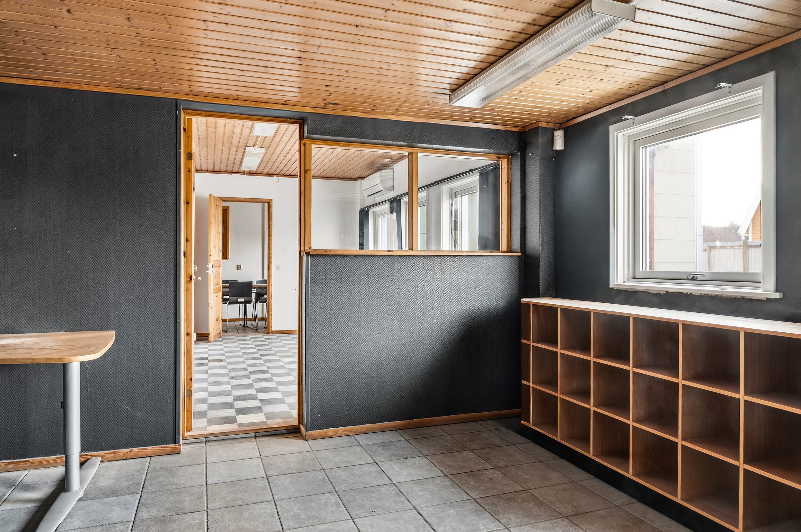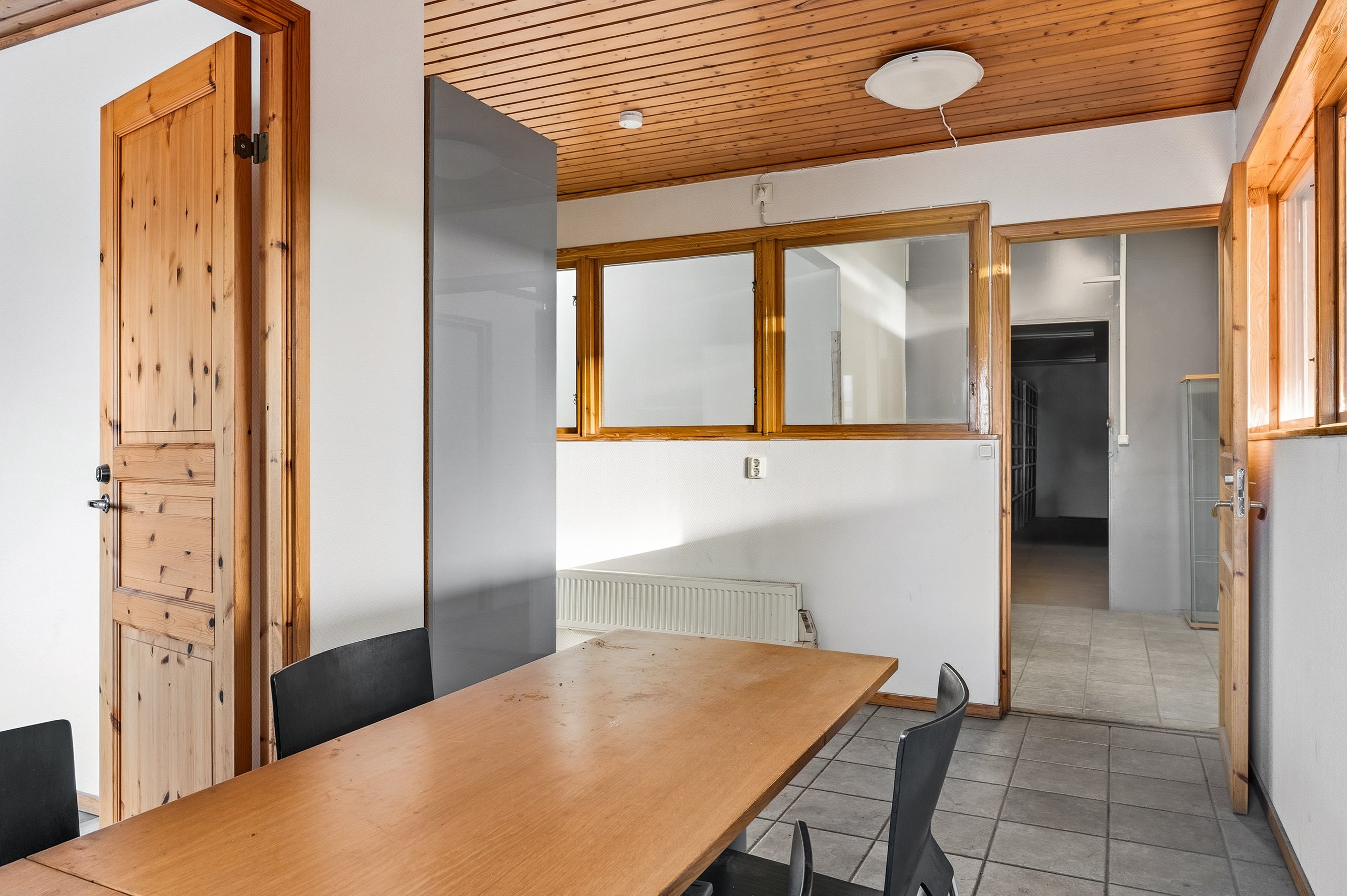 140 kvm kontor med pentry, i direkt anslutning till verkstad, med centralt kök och plats för flera kontorsarbetsplatser.