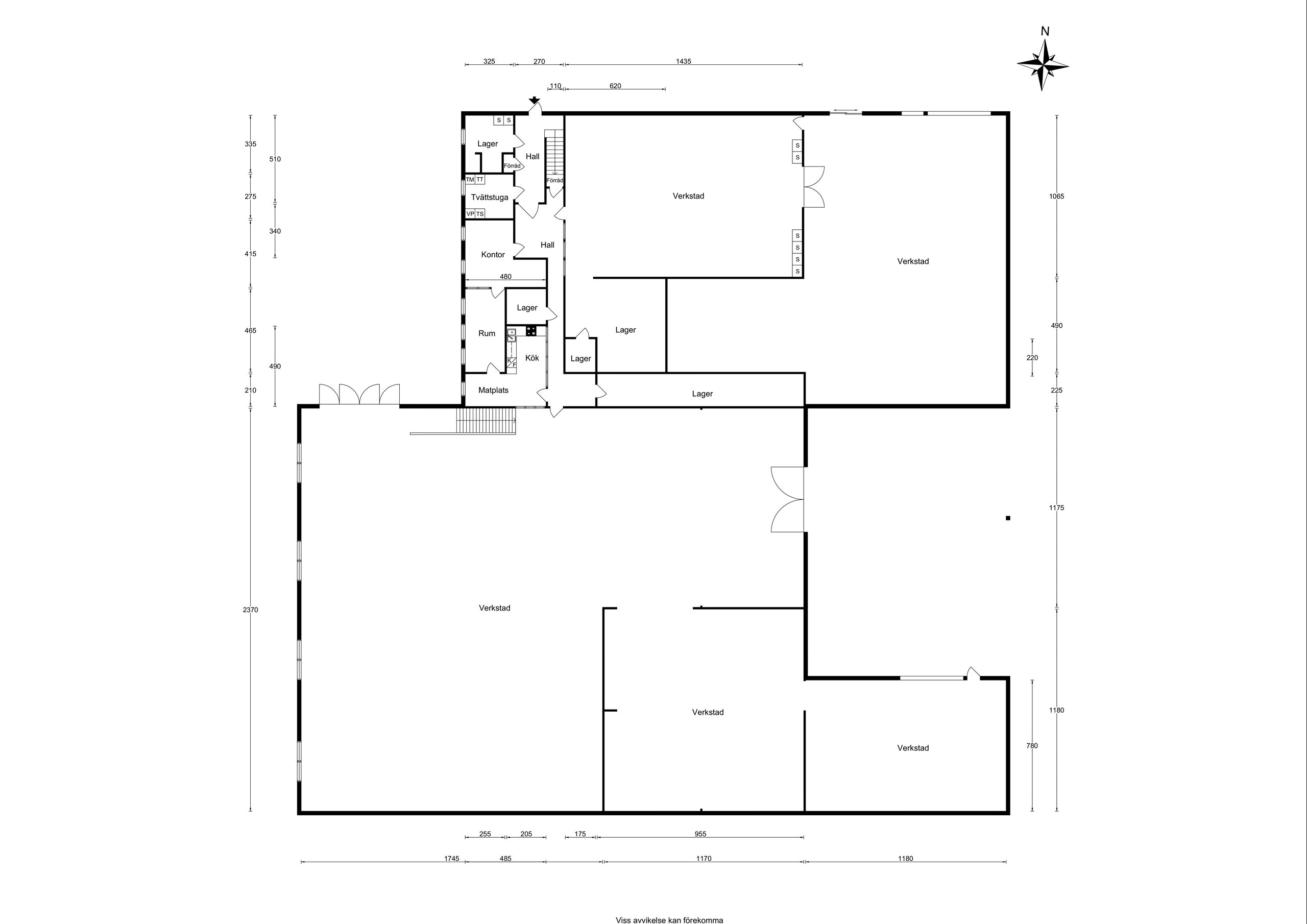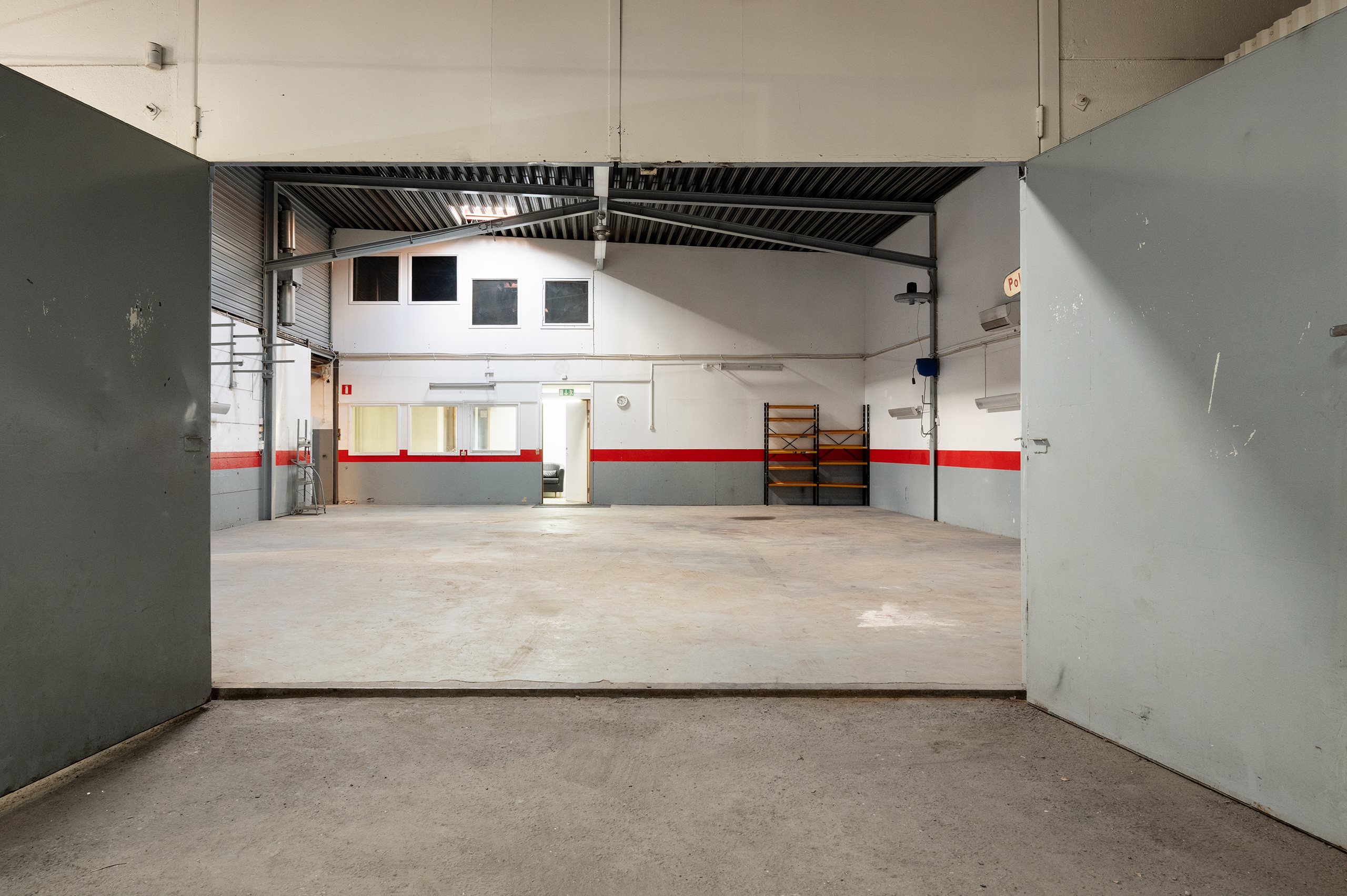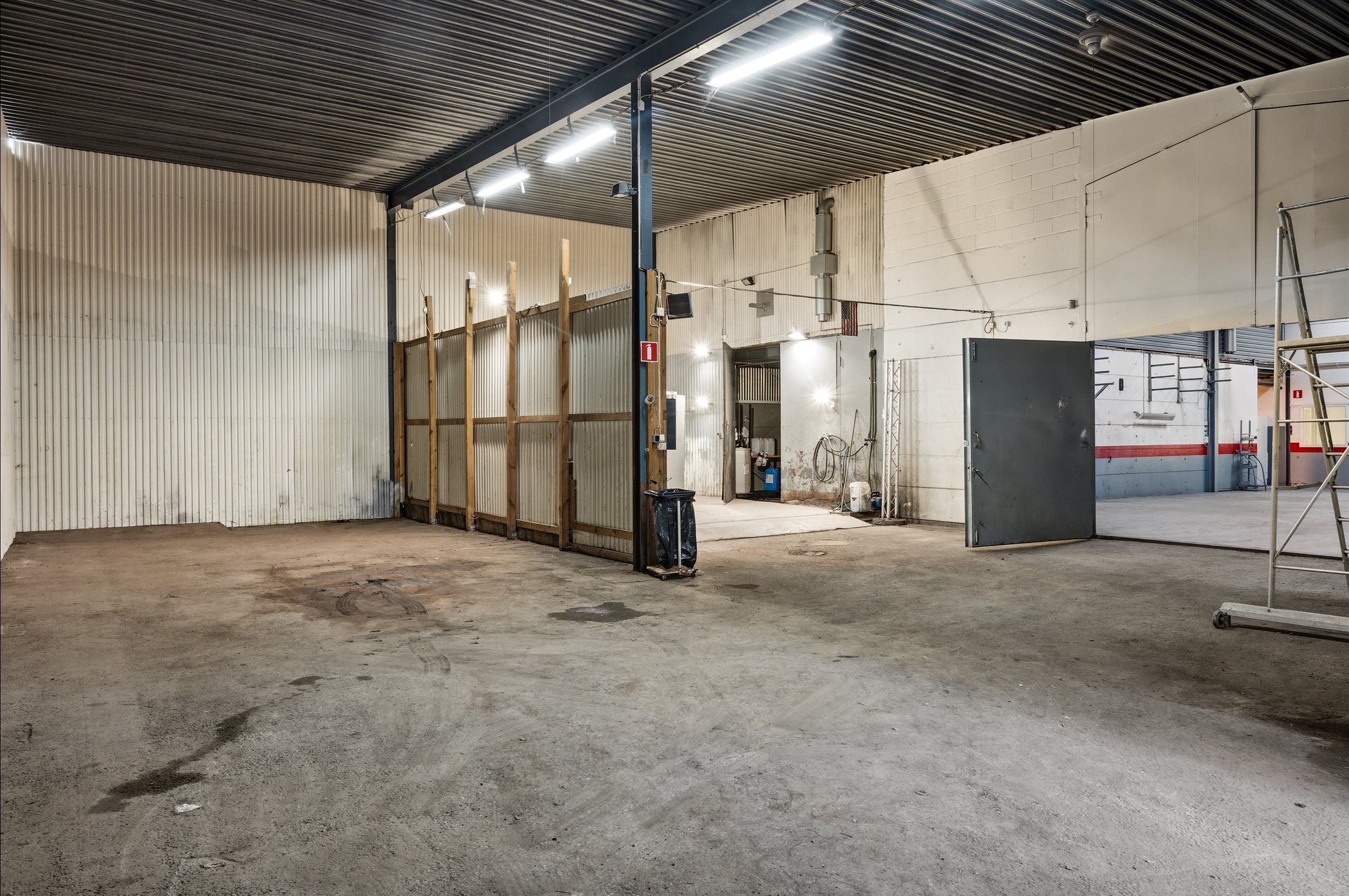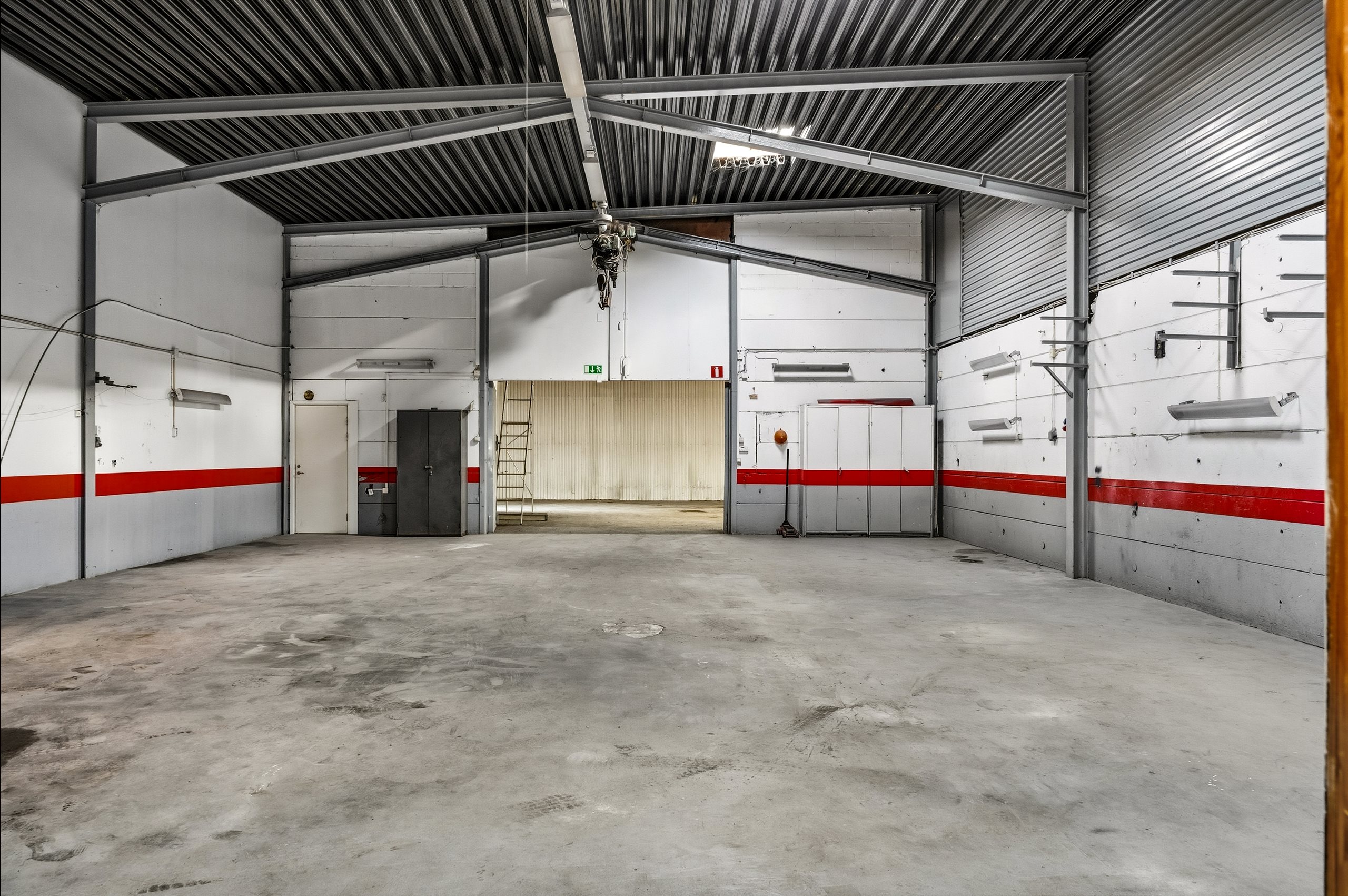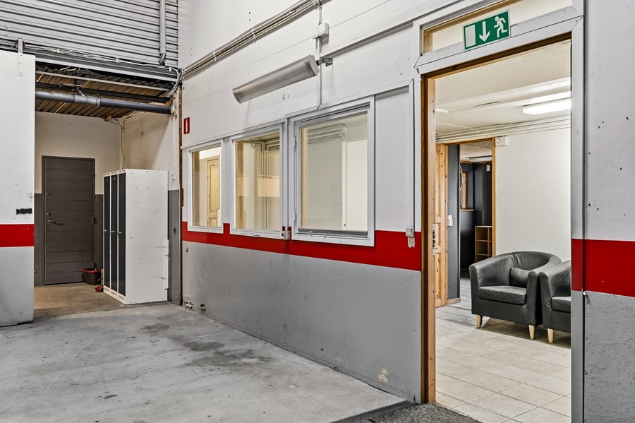 220 kvm verkstad med bygglov för tre portar om 4,5 m – idealisk för fordonsindustri, verkstad, lackering m.m. Kundmottagning finns.