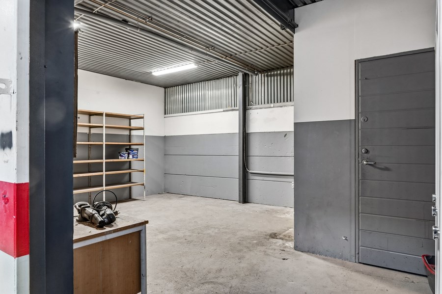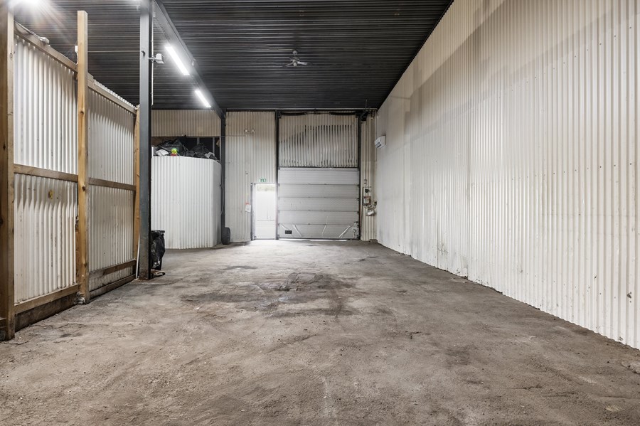 200 kvm verkstad/biltvätt med egen takskjutport om ca 3 m (bygglov för 4,5 m). Ytan är idag uppdelad i uppställning/förvaring och biltvätt.