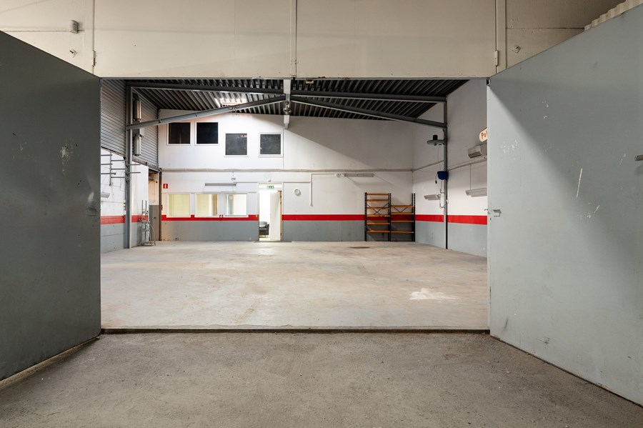 700 kvm kallgarage (erbjuds vid behov över 100 kvm), används idag som uppställningsyta.