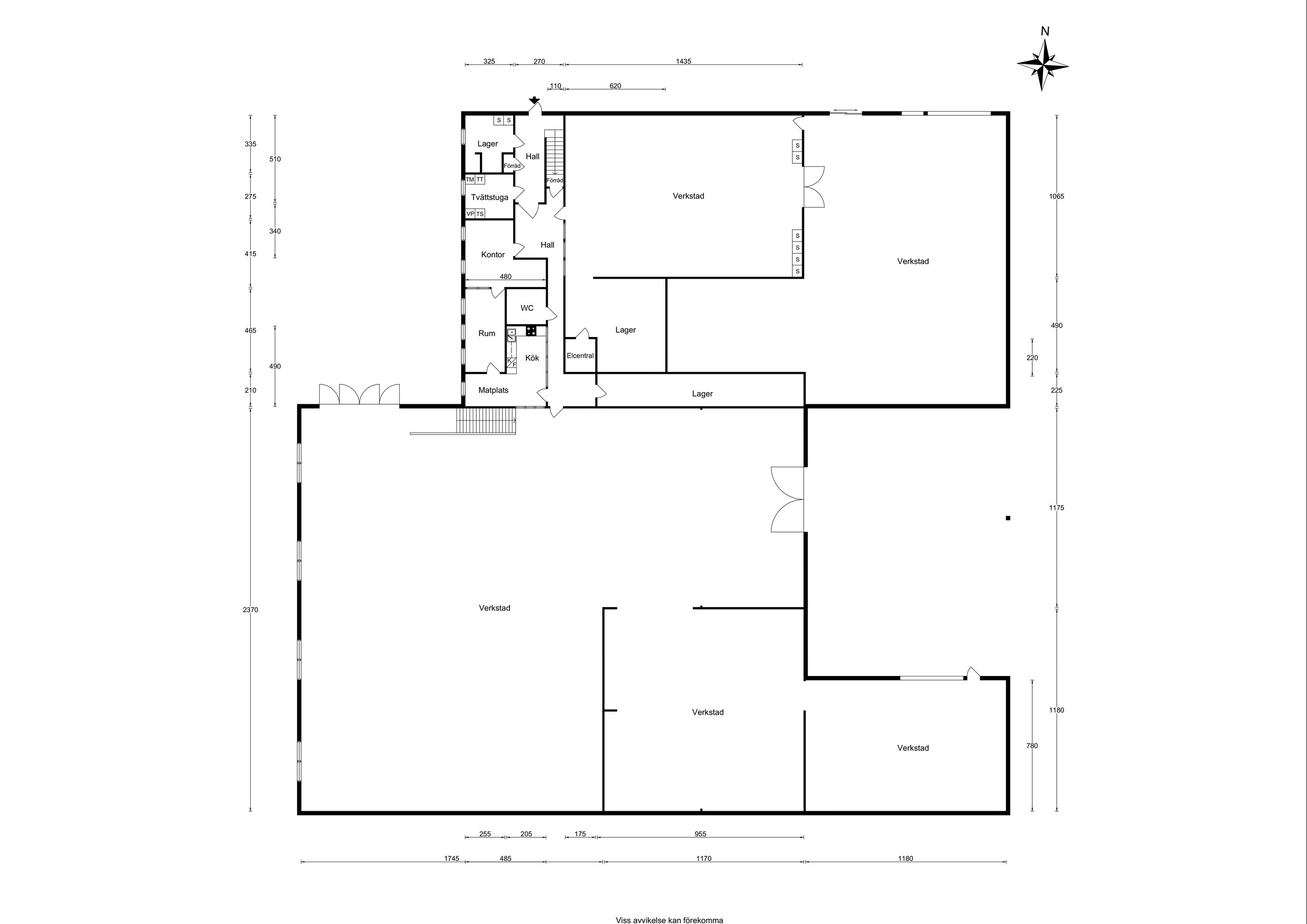 220 kvm verkstad med bygglov för tre portar om 4,5 m – Kundmottagning finns.
