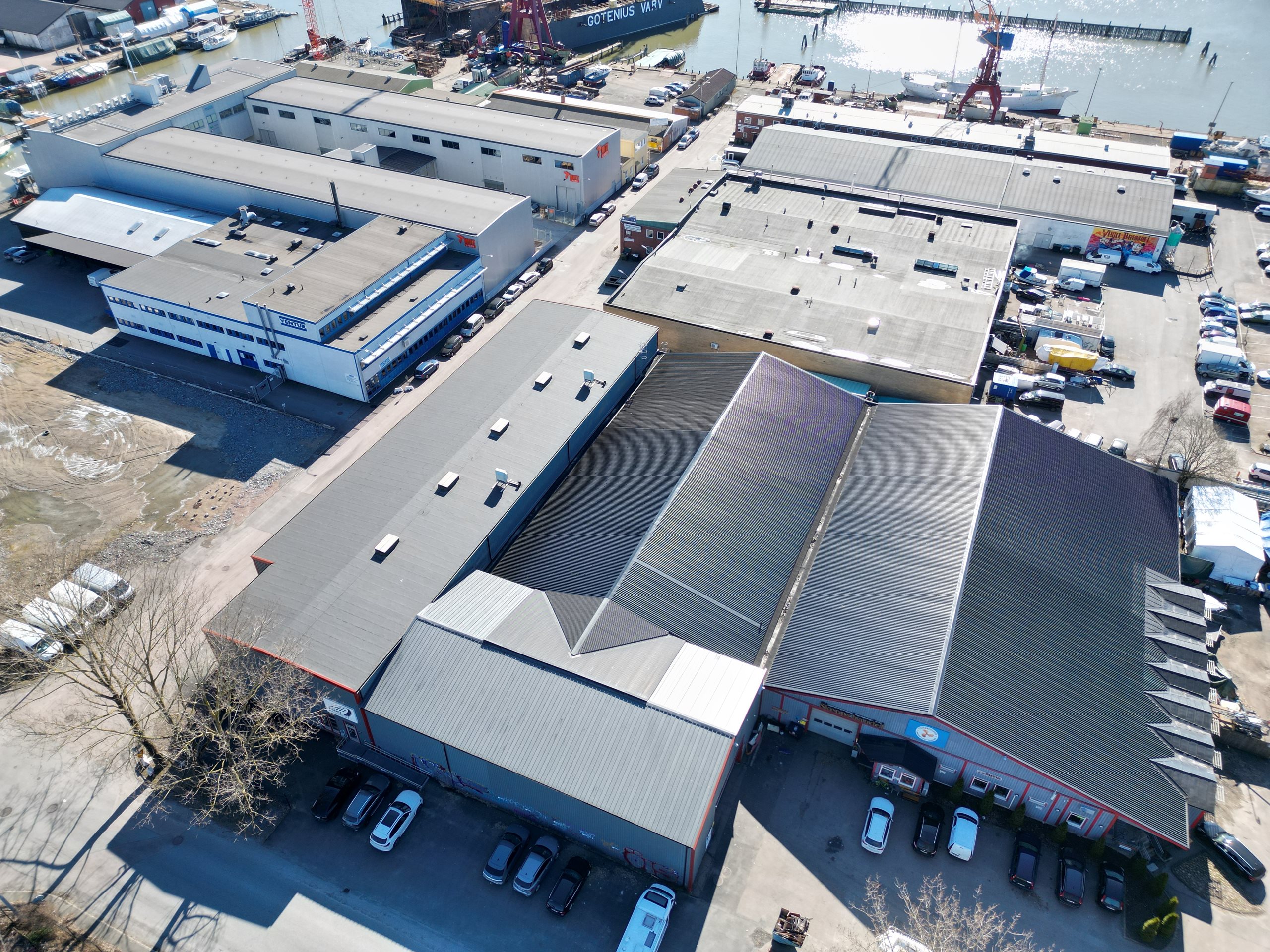 Fullt uthyrd fastighet på attraktiva Ringön i centrala Göteborg. Lagerdel med omklädning/kontor (idag padelhall) kan tomställas om en köpare vill åt ytan för egen verksamhet.