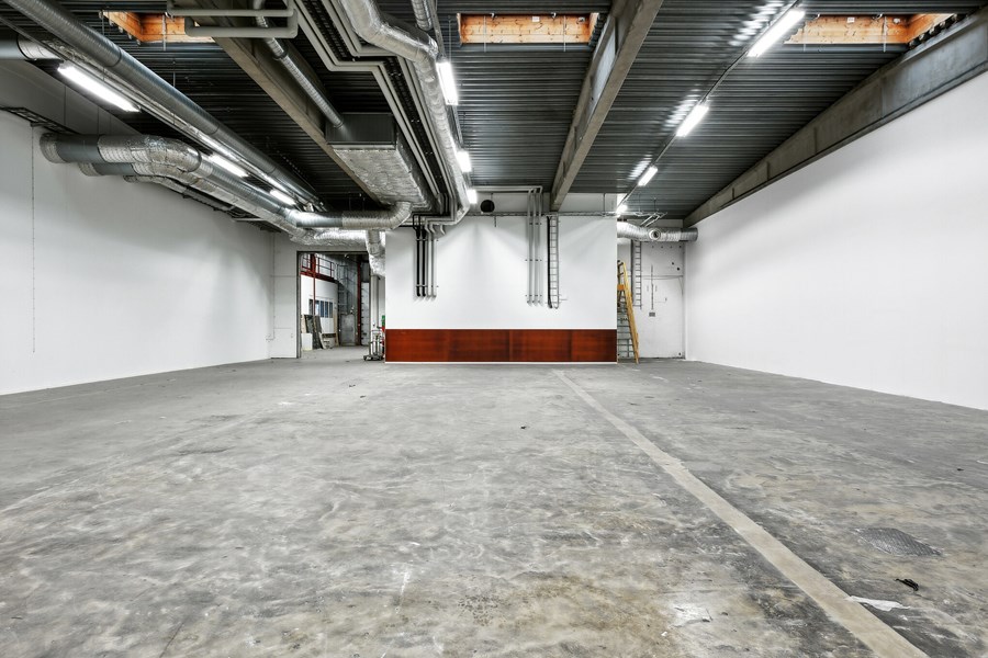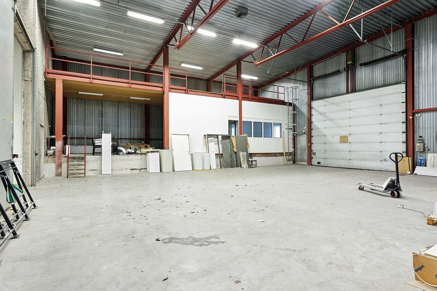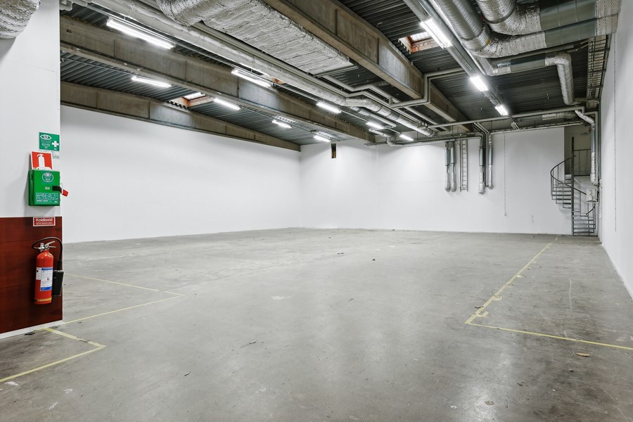 Vid entrén finns en låg entresol – perfekt som plocklager eller för en arbetsstation åt lageransvarig personal.