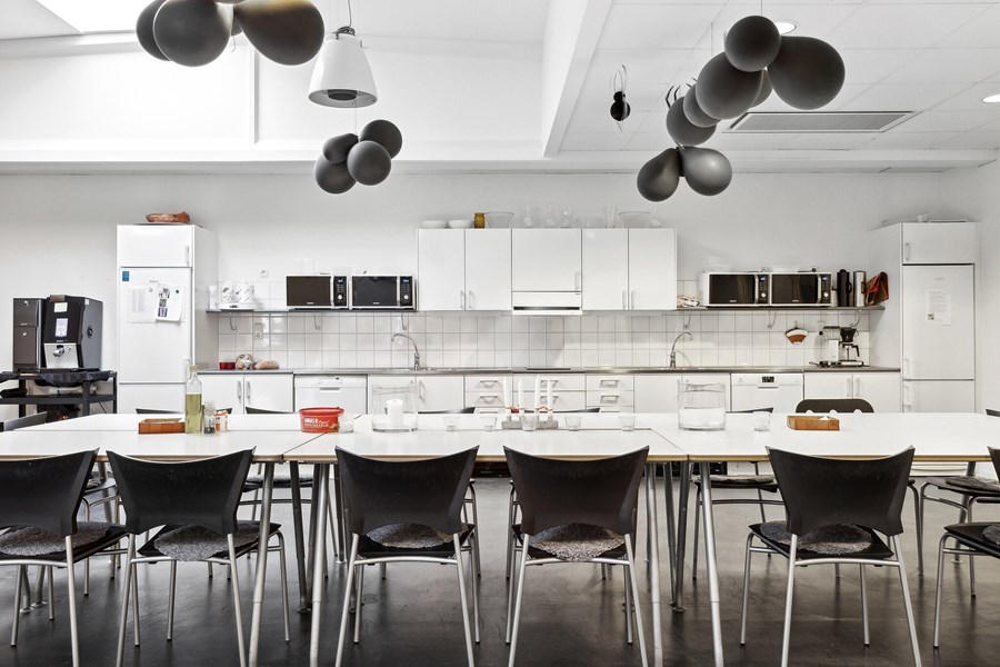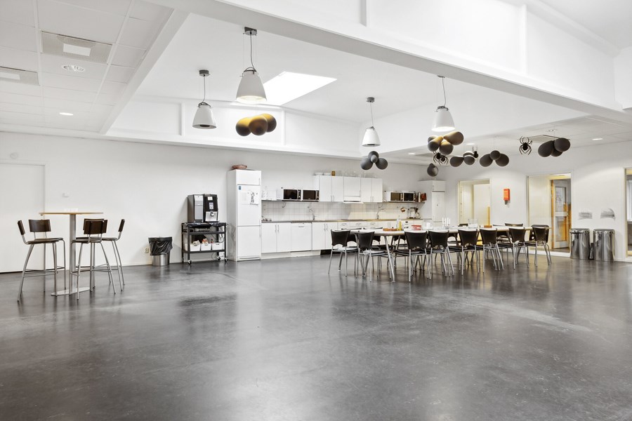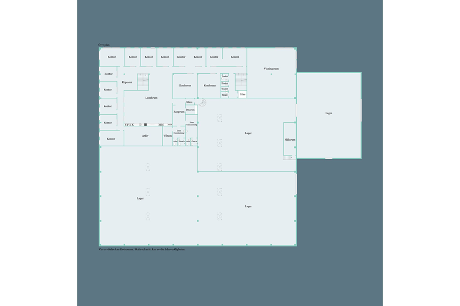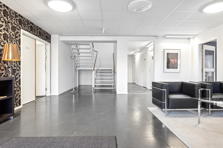 Via en elegant spiraltrappa når du det rymliga kontoret på övervåningen, om cirka totalt 600 kvm möjligt att dela upp denna ytan. Här får du tillgång till flera kontorsrum, konferensrum, toaletter, kapprum samt ett stort och inbjudande kök med samlingsyta – en naturlig plats för gemenskap och kreativt utbyte.