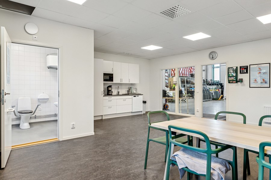 Bra takhöjd med ca 7,9 m under balk och rejäl port om 3,5 x 3,5 m.
