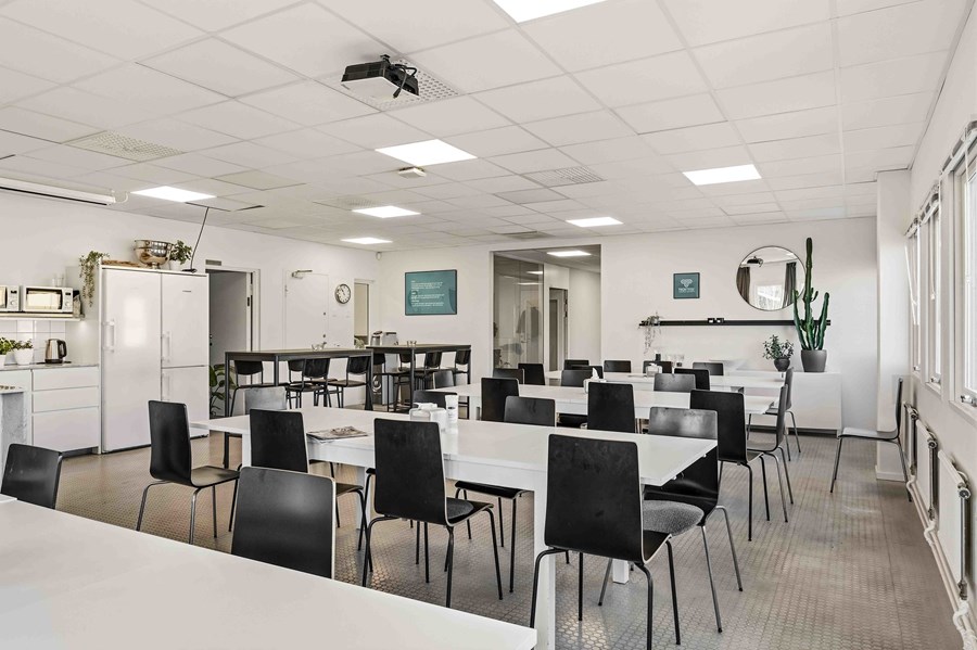 Kök och matsal delas med befintlig hyresgäst. Bra parkeringsmöjligheter.