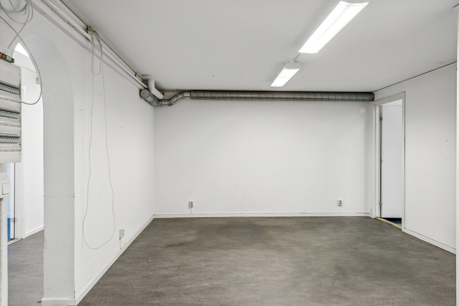 Lagret består av en öppen yta med en takhöjd på ca 5 meter. Ytorna nås via en port med höjd 4,5m från innegården, samt via kontorsdelen. Ytorna kan målas upp inför inflyttning.